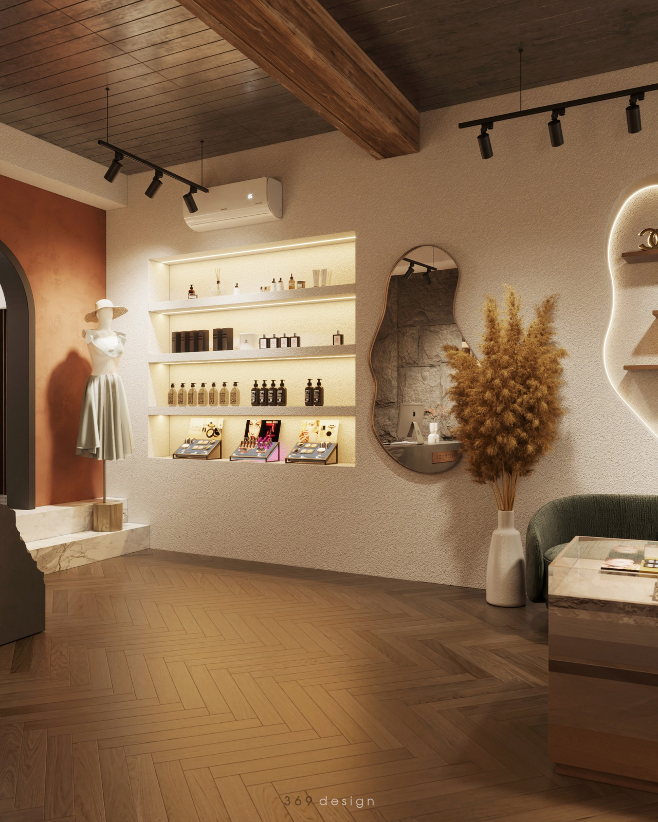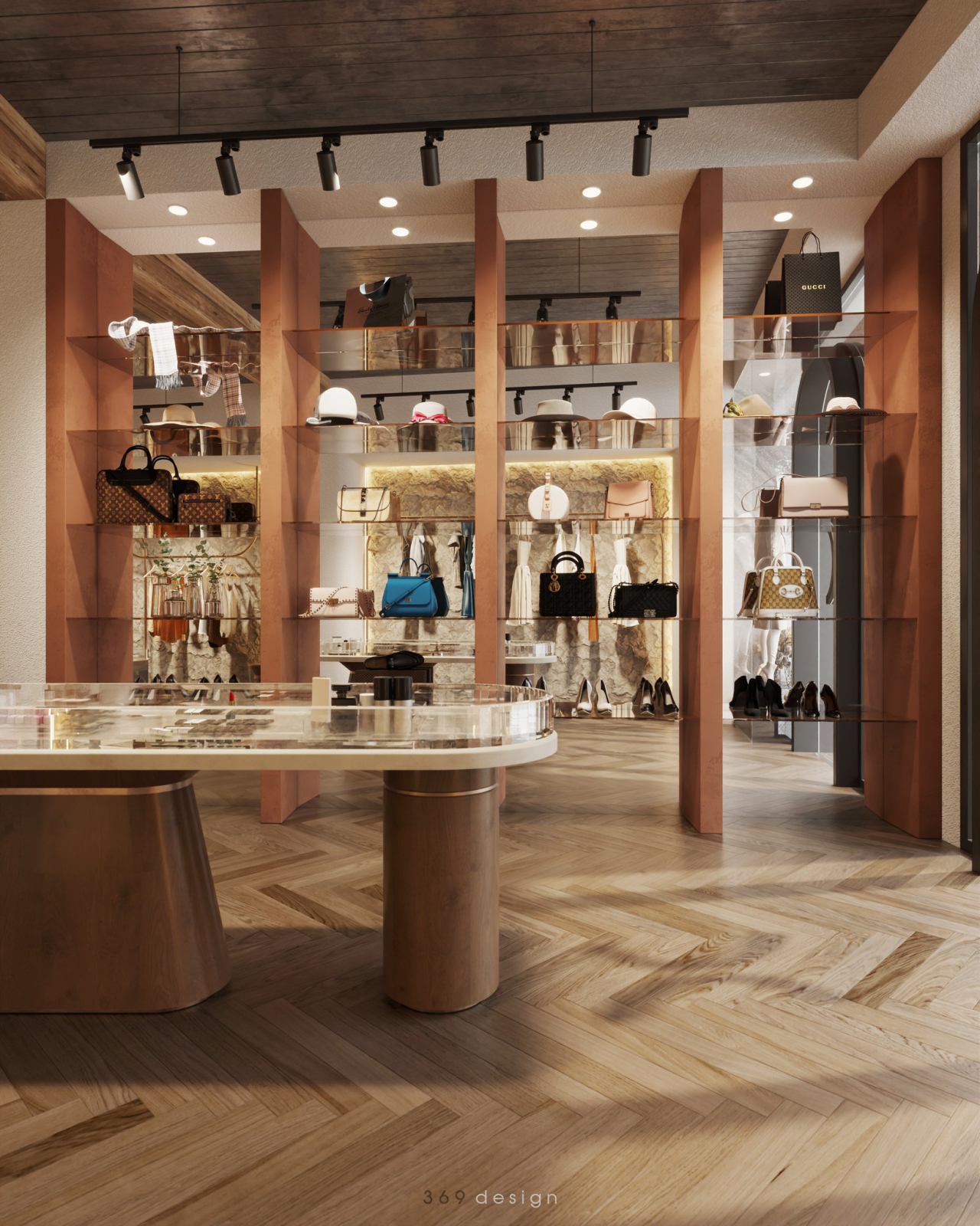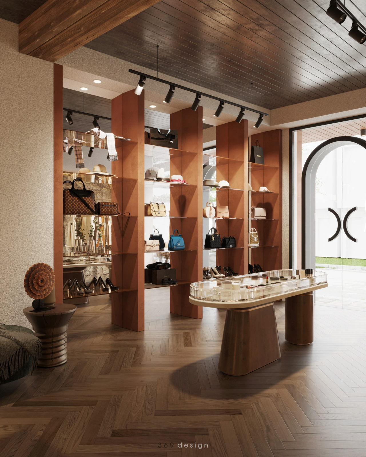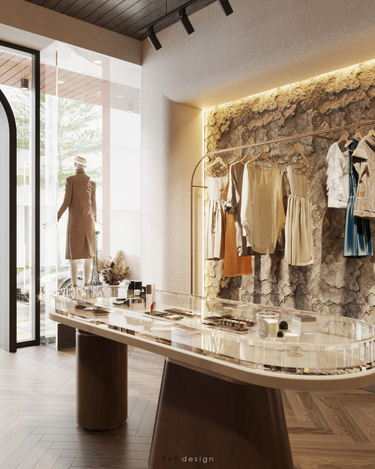 369 Design triển khai thiết kế dựa trên mặt bằng thực tế, tối ưu công năng từng khu vực từ trưng bày, thử đồ cho đến quầy thanh toán. Luồng di chuyển trong cửa hàng được tính toán hợp lý, giúp khách hàng dễ dàng tham quan, lựa chọn sản phẩm và ở lại lâu hơn. Vật liệu nội thất được chọn lọc kỹ, đảm bảo tính thẩm mỹ cao đồng thời phù hợp với quá trình sử dụng lâu dài của cửa hàng bán lẻ.