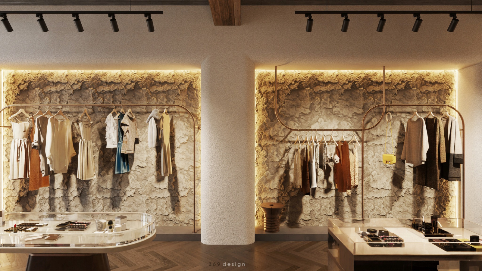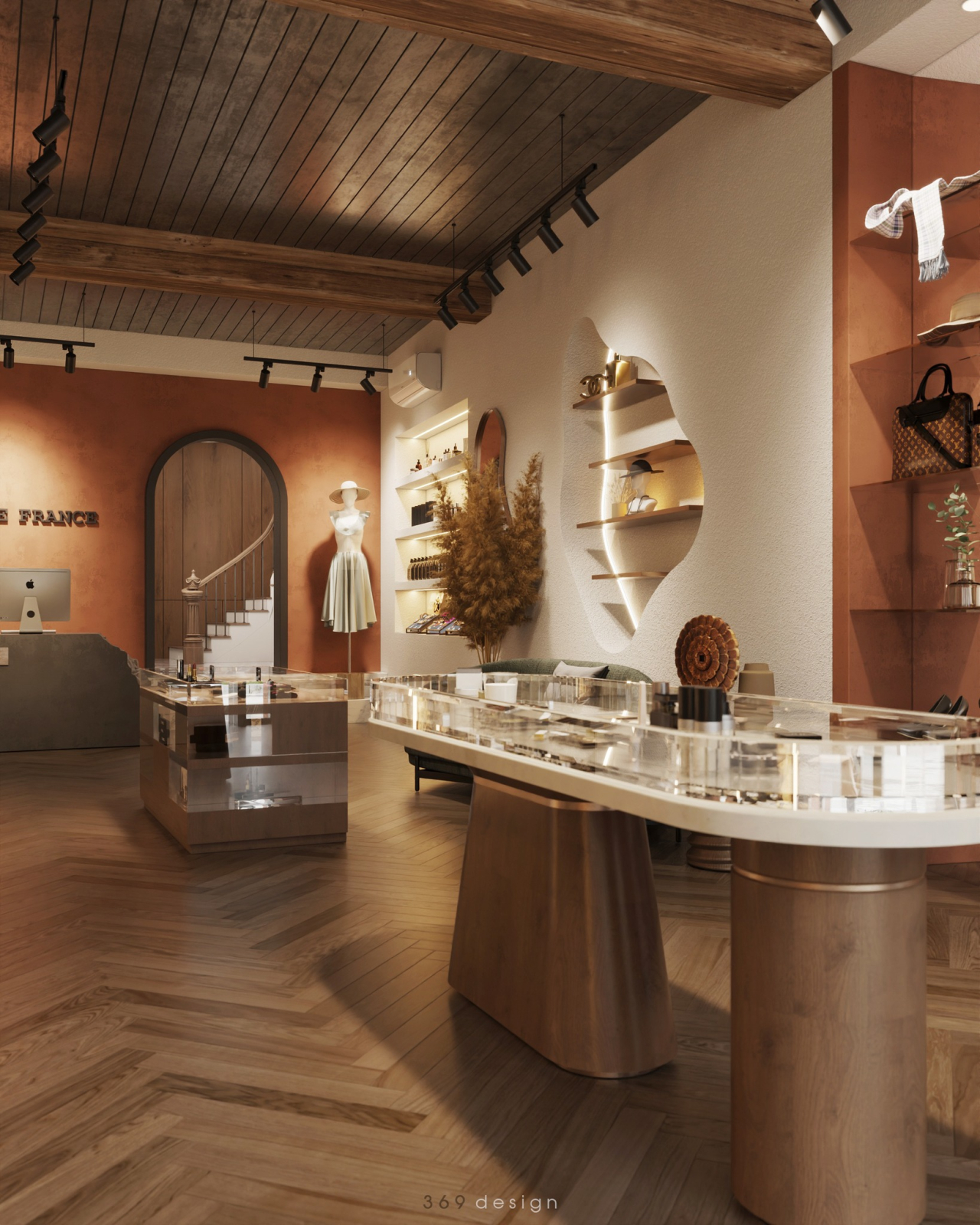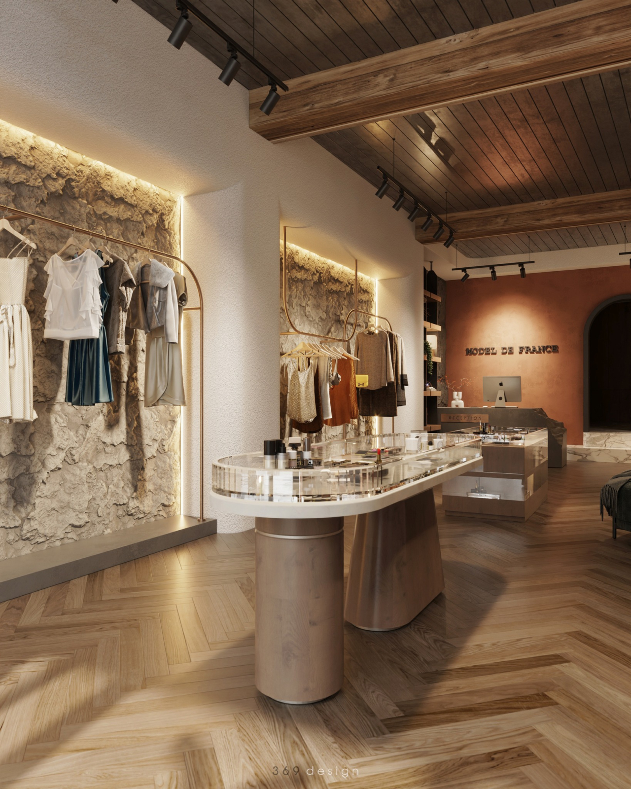 369 Design triển khai thiết kế dựa trên mặt bằng thực tế, tối ưu công năng từng khu vực từ trưng bày, thử đồ cho đến quầy thanh toán. Luồng di chuyển trong cửa hàng được tính toán hợp lý, giúp khách hàng dễ dàng tham quan, lựa chọn sản phẩm và ở lại lâu hơn. Vật liệu nội thất được chọn lọc kỹ, đảm bảo tính thẩm mỹ cao đồng thời phù hợp với quá trình sử dụng lâu dài của cửa hàng bán lẻ.